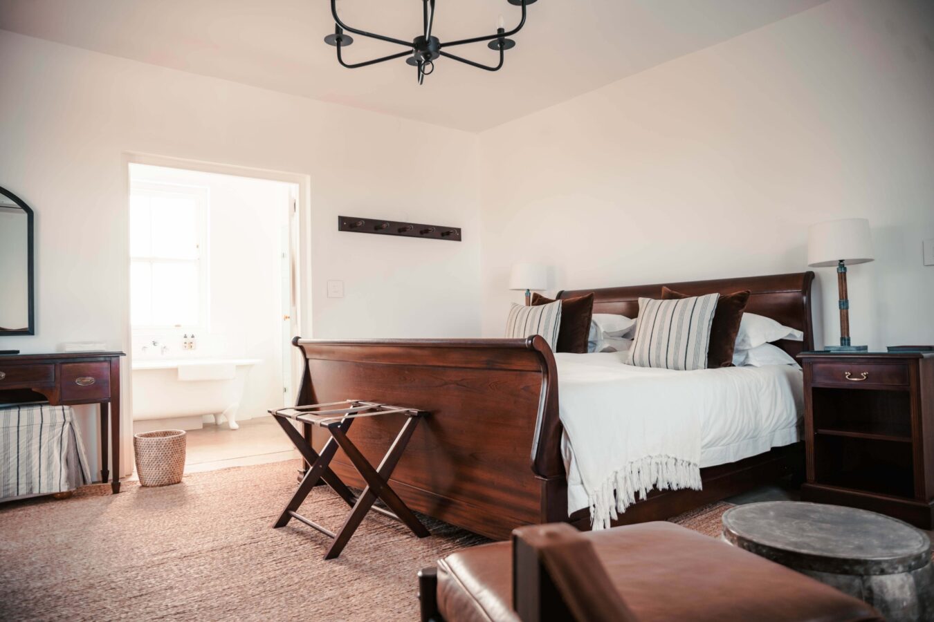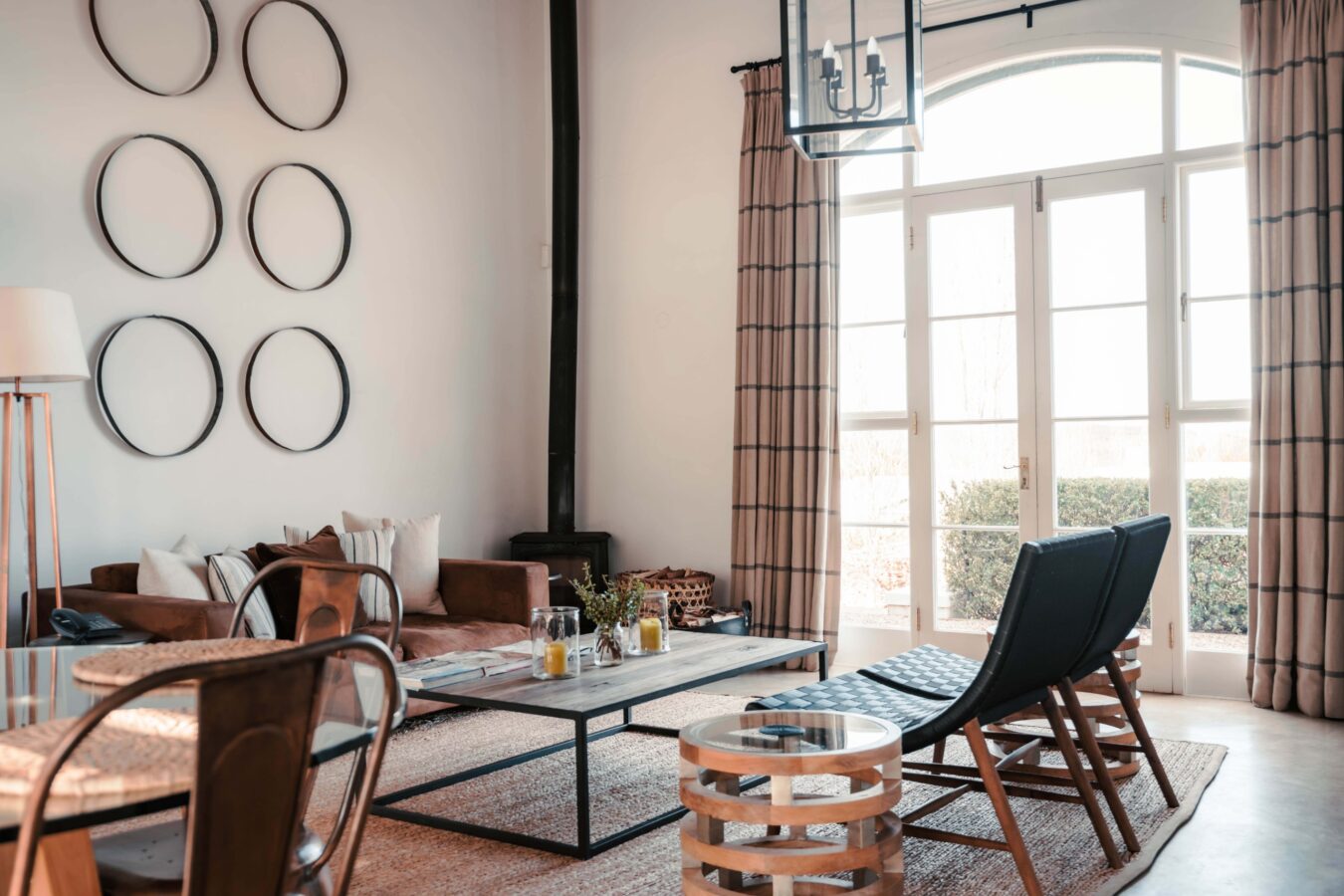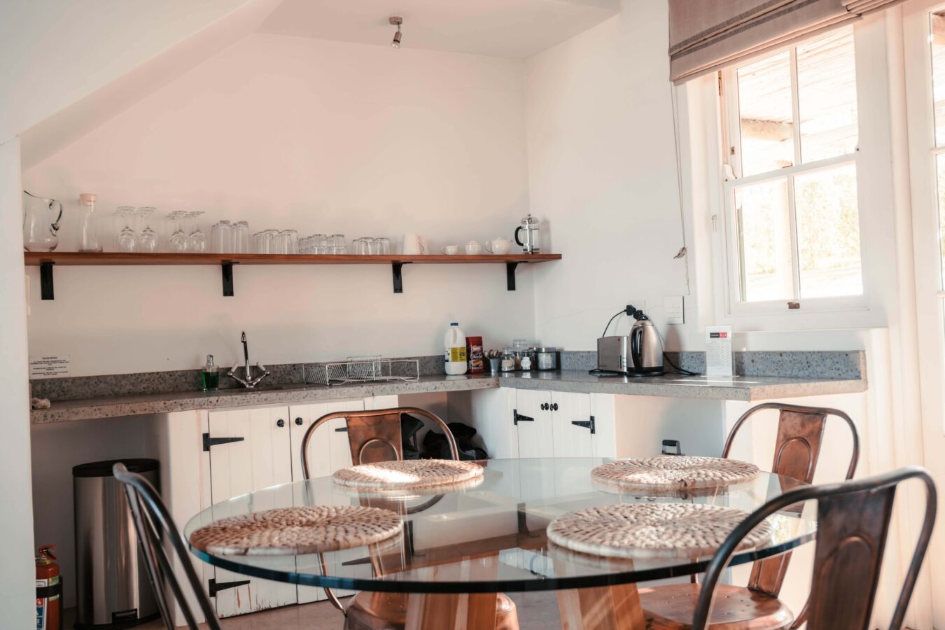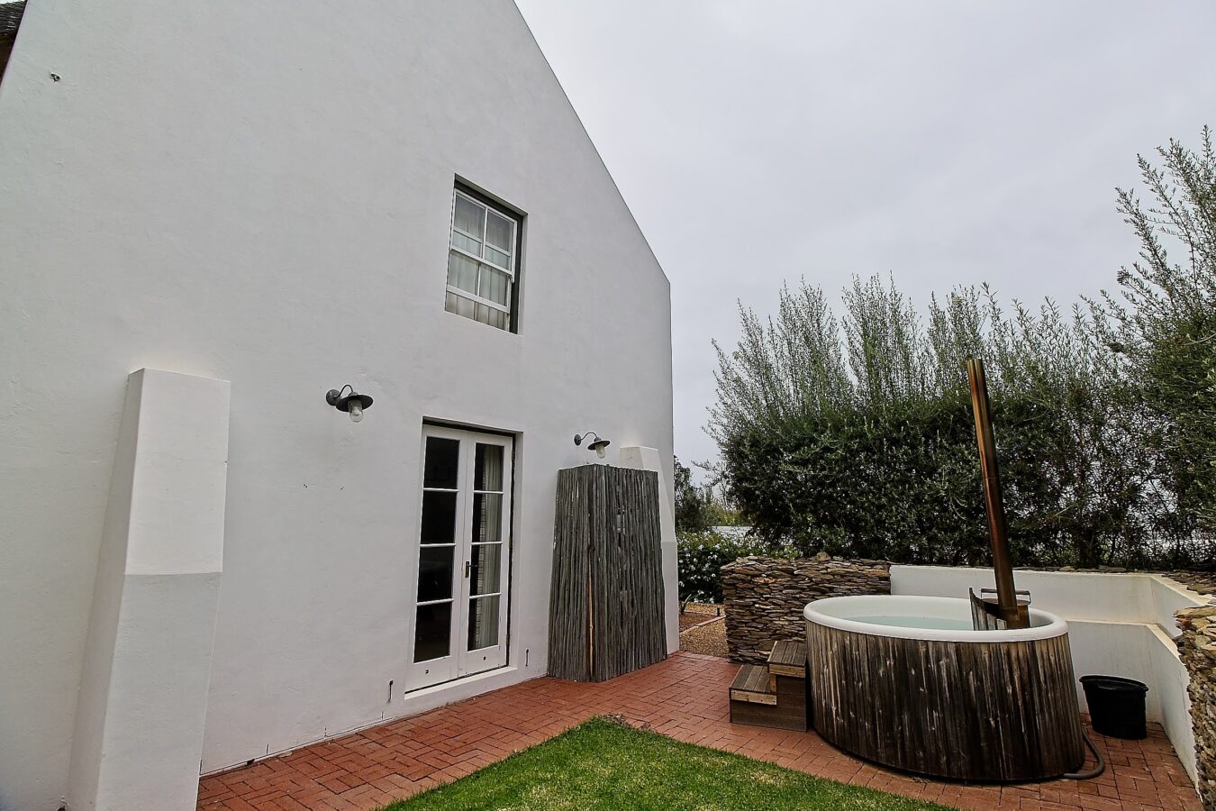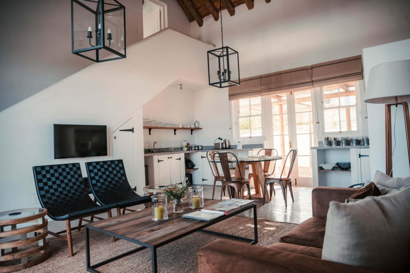 The West and East Grange building is a semi-detached double-story accommodation that is perfect for small families and friends. Each unit sleeps four people in two double bedrooms (one first floor, one upstairs) with en-suite bathrooms. They have fully equipped kitchens, dining and sitting room with wood-burning stoves, TV and WIFI and are fully air-conditioned. Both come with their own Wood Fire, Hot Tub and outside barbeque areas. The Grange has magnificent views of the Riviersonderend mountains and the Nuy Valley in the distance.