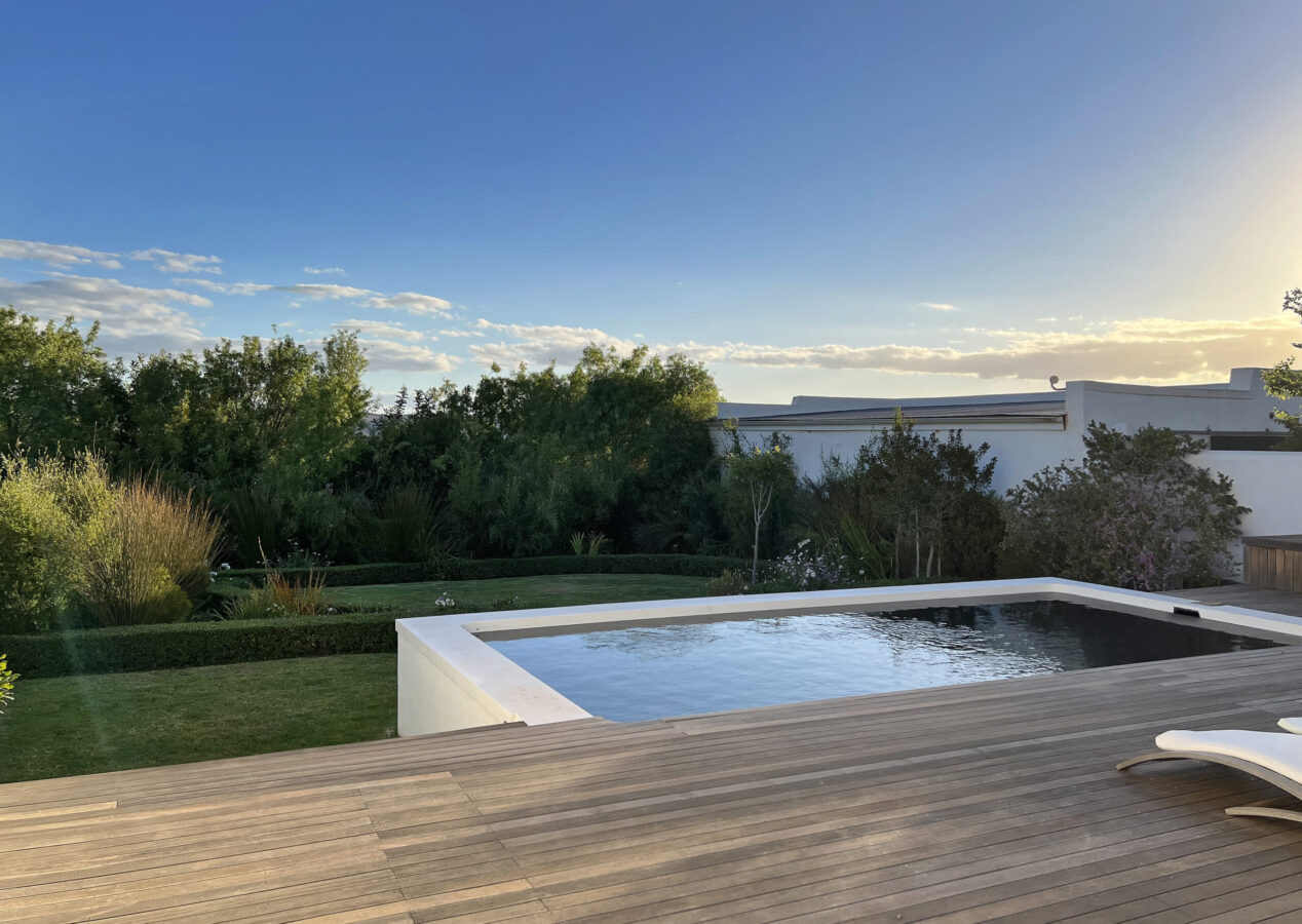 With its own pool, wood fire hot tub and patio that has magnificent views of the Riviersonderend Mountains.