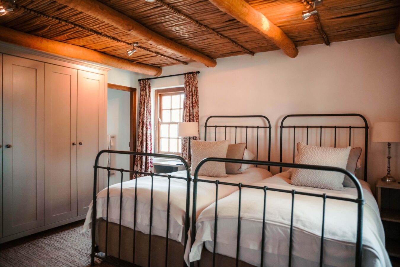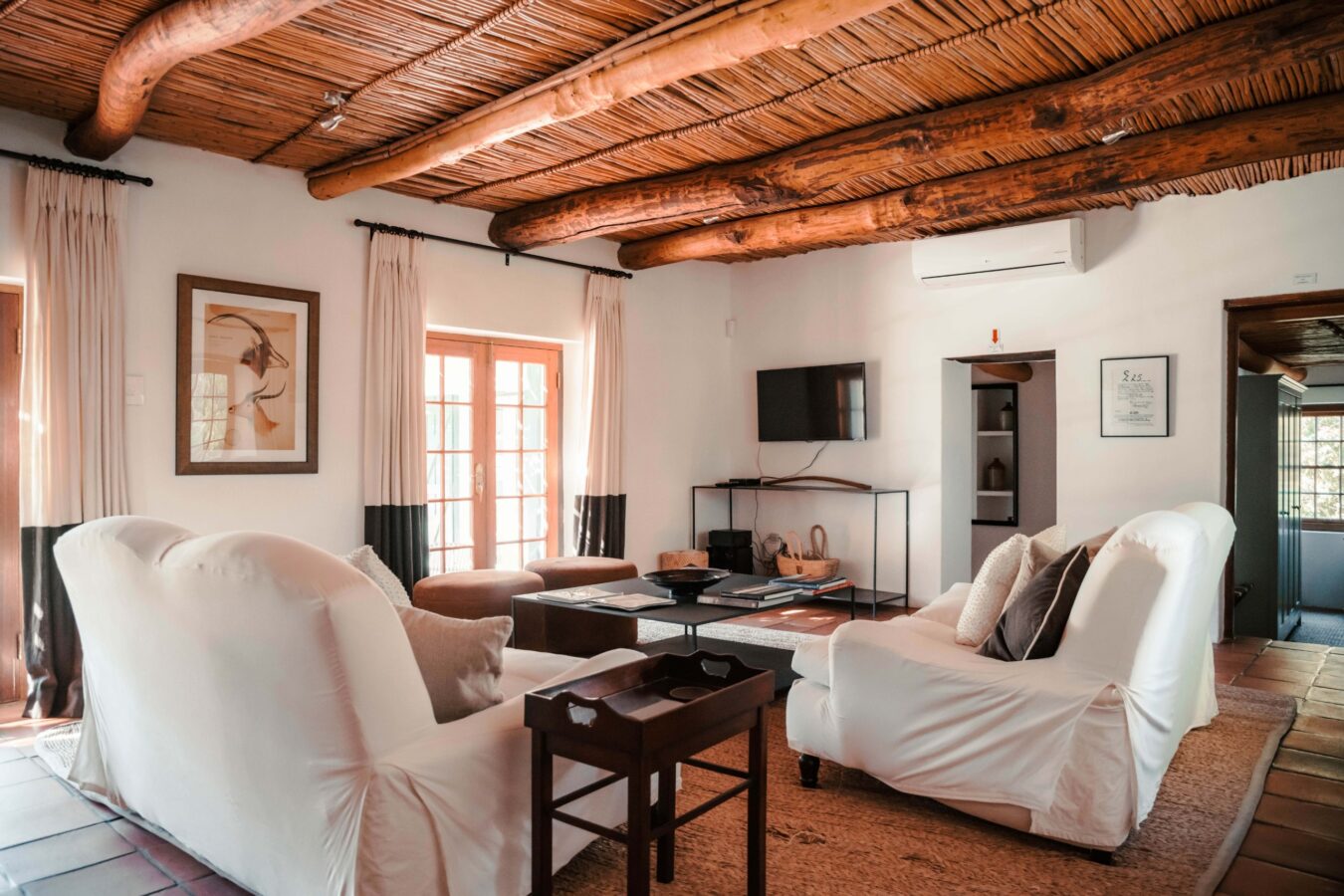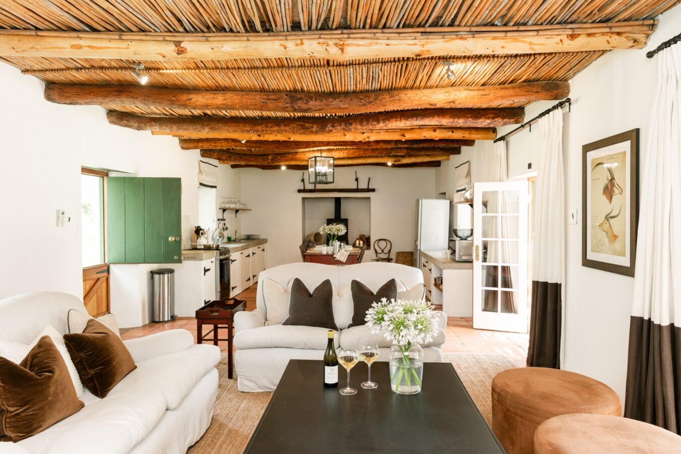 Pepper Tree Cottage has been refurbished honouring its historical significance to accommodate four people in two double bedrooms, with en-suite bathrooms. It has a fully equipped kitchen, dining room and sitting room. It is air-conditioned, has a wood-burning stove, TV and wifi.
