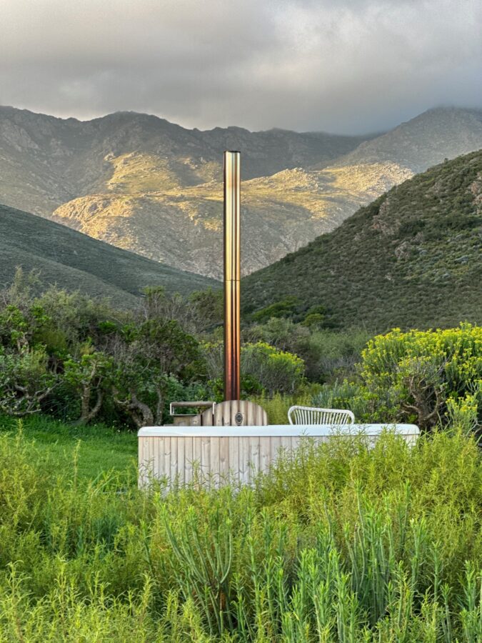 With its own pool and wood fire hot tub in an enclosed garden that has magnificent views of the Naudesberg in the distance.
